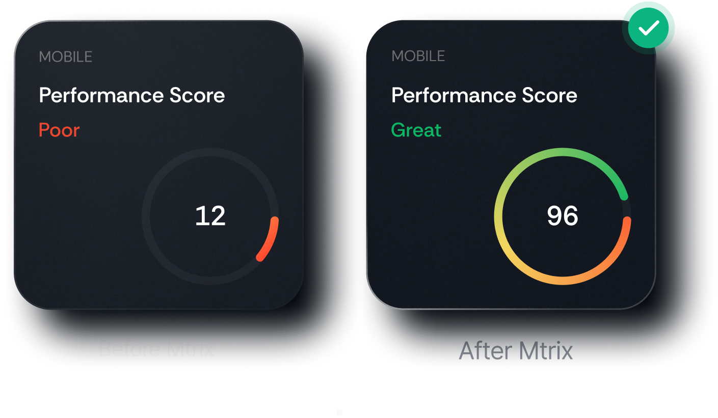 Mtrix ensures negligible overhead, maintaining under 1.6s load times even on slow mobile connections. Making sure you’re not losing a customer due to slaggy performance.